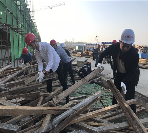 當(dāng)天,二支部全體黨員前往馬壕污水處理廠擴容工程現(xiàn)場參觀學(xué)習(xí)。項目負責(zé)人詳細的介紹了項目基本情況,并帶領(lǐng)全體黨員在現(xiàn)場開展治理揚塵、搬運模板、構(gòu)件等志愿服務(wù)活動。黨員們佩戴黨徽,頭戴安全帽,以一名項目建設(shè)者的身份積極參加馬壕污水處理廠現(xiàn)場建設(shè),以實際行動支持項目建設(shè),助推重點工程進度。